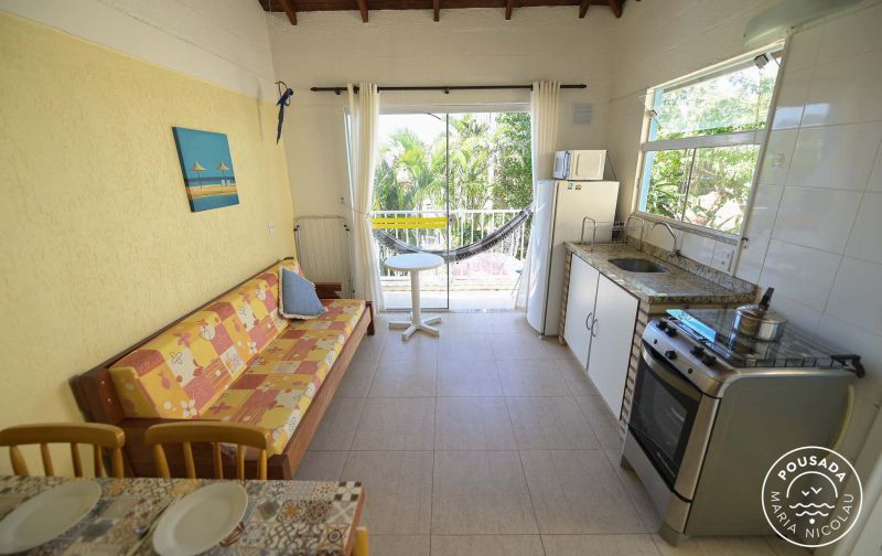 Nossa cozinha é bem equipada, com micro ondas, torradeira elétrica e liquidificador.