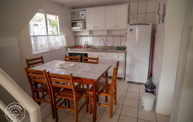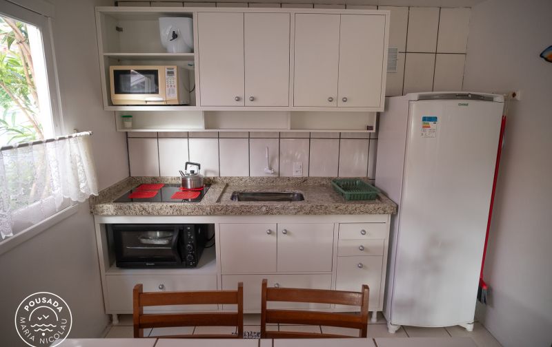 Nossa cozinha é bem equipada, com micro ondas, torradeira elétrica e liquidificador.