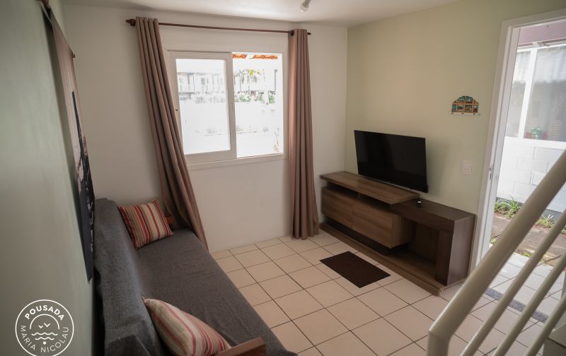 A casa 01 está voltada para a rua principal e tem agradável área com rede e churrasqueira.