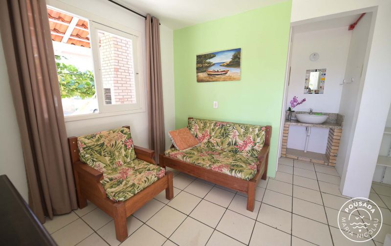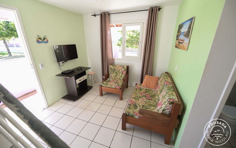 A casa 02 está voltada para a rua principal e tem agradável área com rede e churrasqueira.