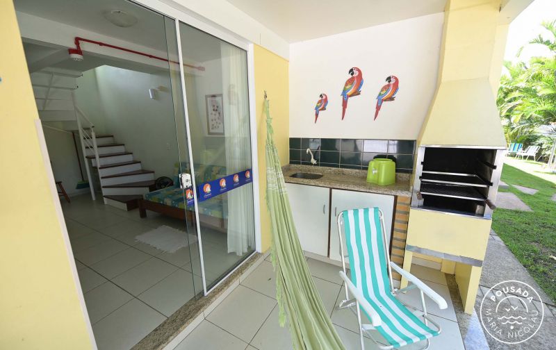 A casa 05 está voltada para a piscina e tem agradável área com rede e churrasqueira.
